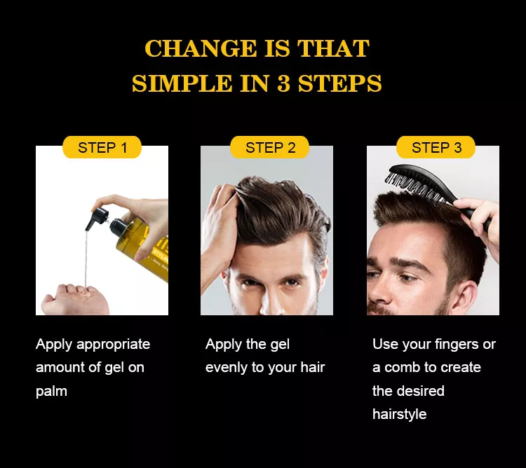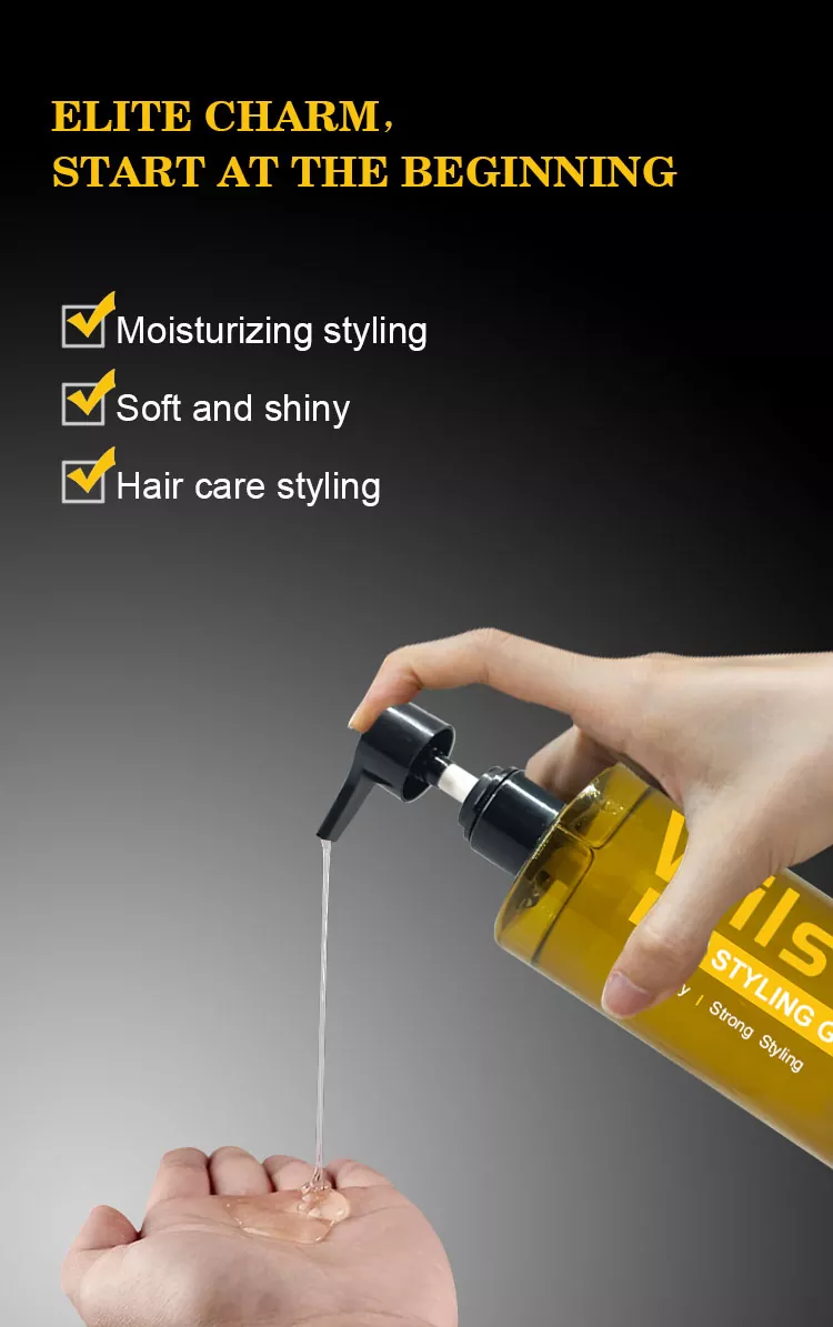 Wilson Men's Ultra Smooth Seamless Hair Styling Gel skoonheidsmiddels verwys na die haarstilering en modifiserende effek van die skoonheidsmiddels, gespuit of toegepas op die hare, die oplosmiddel verdamping en droog op die hare om 'n deursigtige film te vorm, sodat die haarvesel verhard en die vorm van die doel behou om aan die behoeftes van verskeie haarstyle te voldoen.